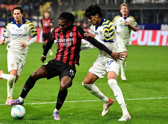 米蘭開局勢頭不錯,第12分鐘,恩昆庫禁區(qū)前沿接球后回敲,薩勒馬克爾斯毫不猶豫閃開角度打出貼地斬,皮球直接滾入網窩,1:0!第18分鐘,帕爾馬角球機會造成米蘭門前混亂,庫特羅內將球撞進球網,但越位在先。第25分鐘,薩勒馬克爾斯右路持球自信穿襠過掉勒維克后被補防的恩迪亞耶撞倒在禁區(qū),主裁判觀看回放后判罰點球,萊奧主罰命中,2:0!