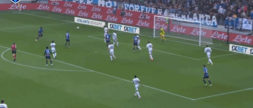 第29分鐘,皮納蒙蒂造點,貝拉爾迪主罰命中,薩索洛1-0亞特蘭大
