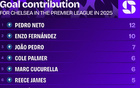 佩德羅-內托2025年英超進球5+、助攻5+,是藍軍隊內唯一一人